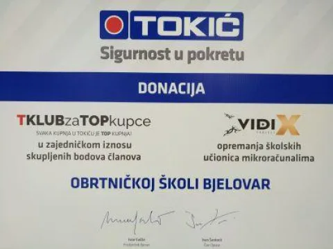 U sklopu programa vjernosti TKLUBzaTOPKUPCE, članovi, u prvom redu serviseri i mehaničari, prikupili su 15.938,75 kuna za mlade automehaničare Obrtničke škole Bjelovar. Dio je to programa i inicijative kojim Tokić već treću godinu, kroz viziju održivog poslovanja, kao i svi njeni kupci, ne zaboravlja lokalnu zajednicu.